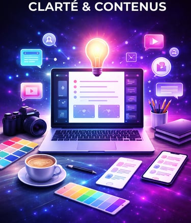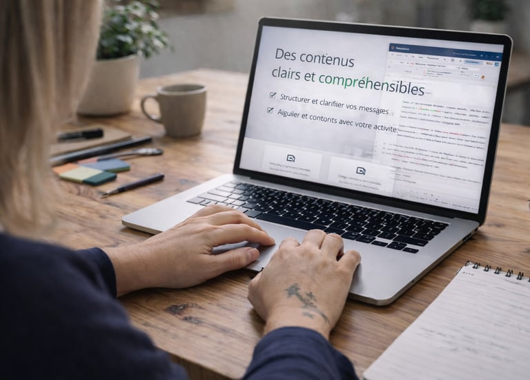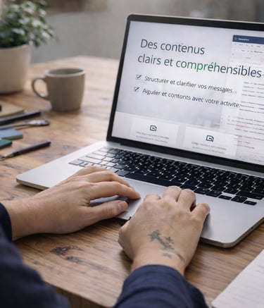 Clarification et structuration de vos contenus pour qu’ils soient compréhensibles, cohérents et alignés avec votre activité.